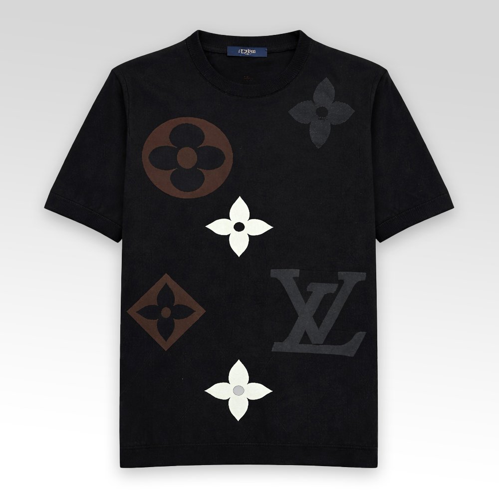 LV Monogram Short-Sleeved Cotton Crewneck Knit T-Shirt